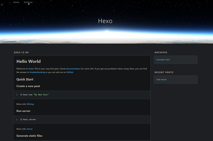 稍等两分钟,打开浏览器访问:https://<用户名>.github.io/,就可以看到博客内容了。