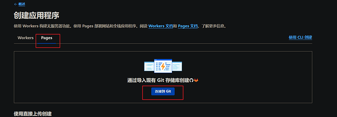 打开 Cloudflare ,在workers和pages中选择创建项目,选择pages的连接到Git